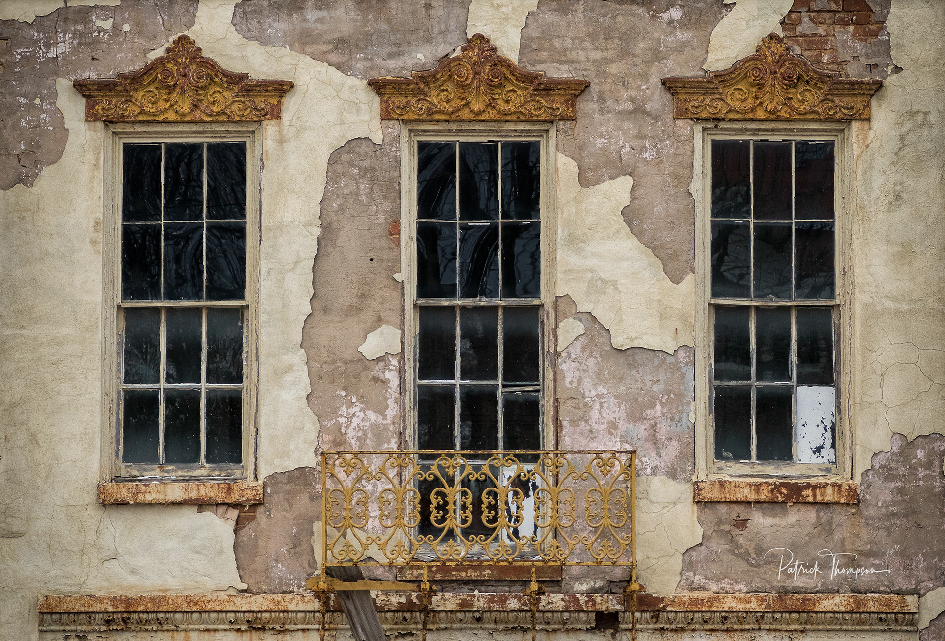 The deteriorating facade of this building speaks of a time gone by in Holly Springs, MS